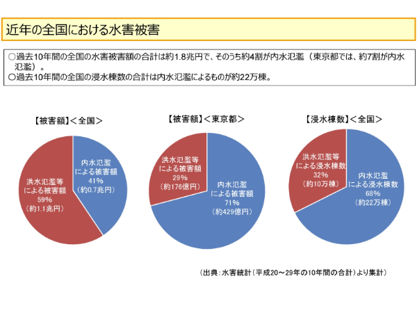 東京都:洪水被害の割合29%、内水氾濫の割合71%
