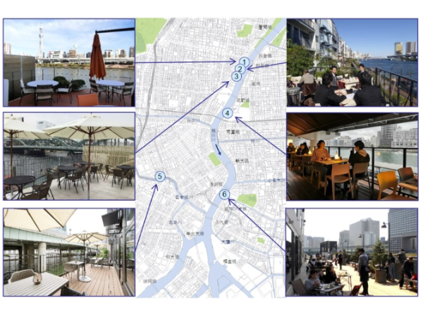 かわてらすは、飲食スペースとして利用することが前提となっているため、墨田川を背後にして立っている建物の2階部分に飲食店が入っているような物件に活用の可能性がある。川沿いは必ずしも商業繁華性が高いわけではなく、飲食店としては1階部分のニーズの方が高いことから、元々かわてらすの条件に合うような飲食店は少ないといえる。