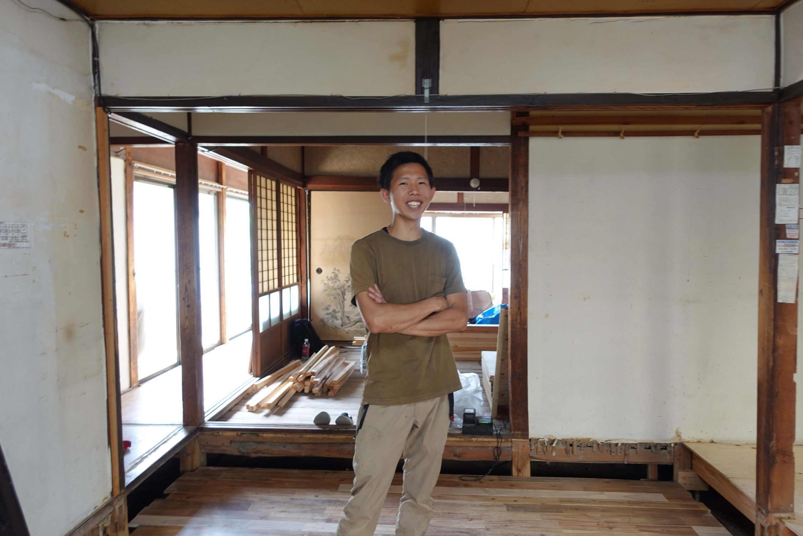 「一般の人は難しそうに感じるやろうけど、床の傾きを直すのは割と簡単なんですよ。一回全部抜いて、土台を敷き直せばいい。工事を自分ですることができるから、僕は空き家を買った時点で、確実に事業をはじめることができるんです」