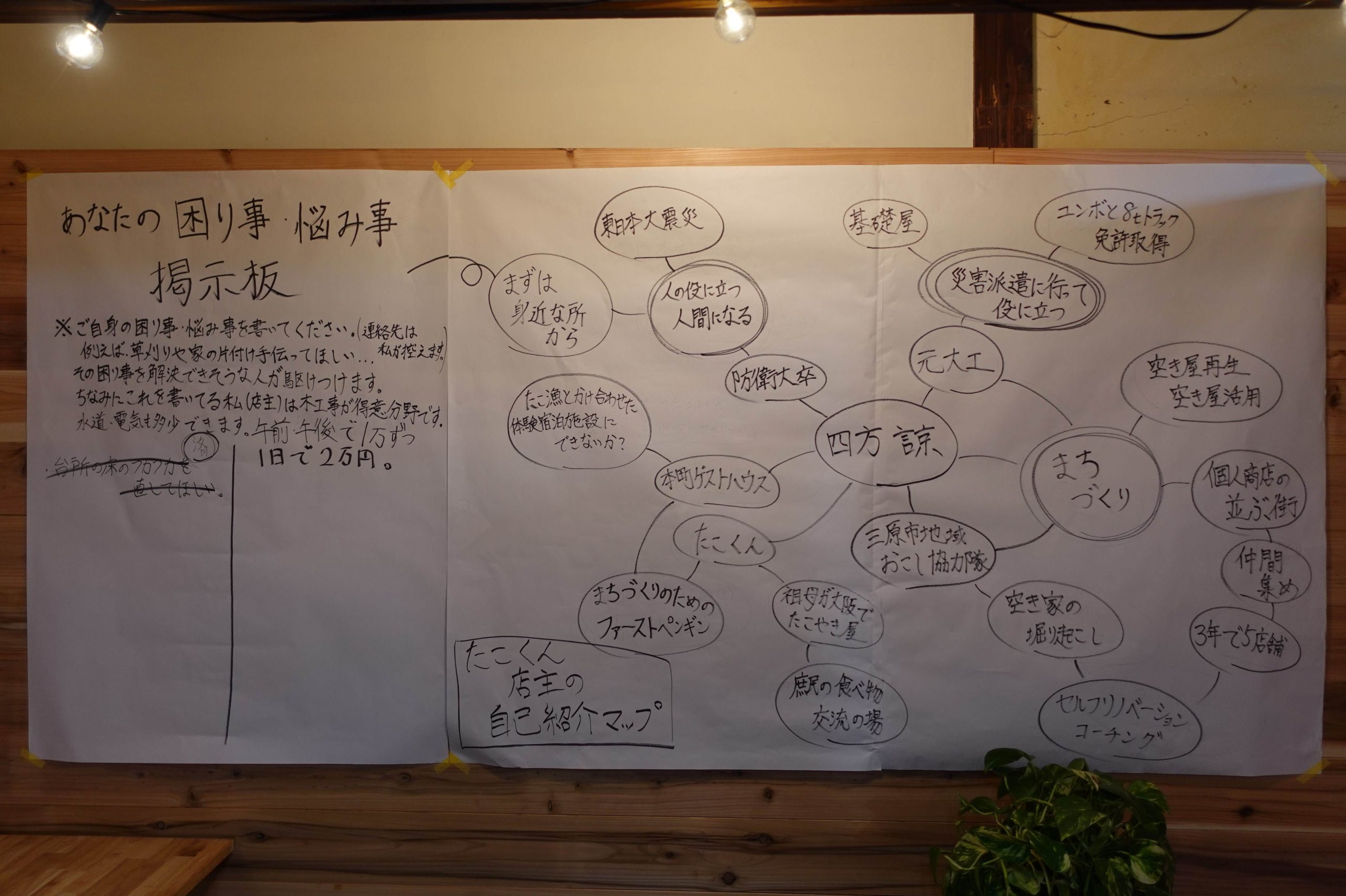 現在は、ゲストハウスは予約があり次第随時受け付け、たこ焼き屋は週末に営業している。それ以外の時間は大工の仕事にあて、三原で新たな事業をはじめる人の手伝いをする生活だ。これまでに、ゲストハウスやフランス料理店をはじめる人のリノベーションを手掛けて来た。全工程を四方さんが請け負うのではなく、一緒に作り上げるから費用も抑えられるのだという。