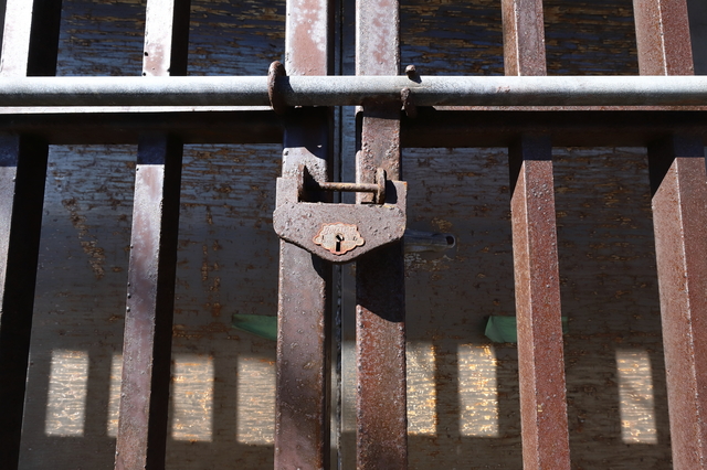 鍵で開閉するのではなく、閂の穴に細い棒を数本差し込んで固定していたらしい。