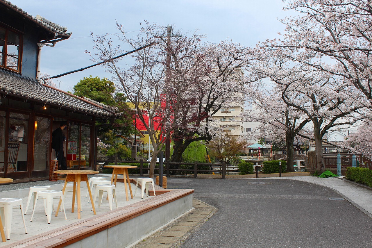 折しも取材日は桜が満開。平日にもかかわらず川辺は花見客でにぎわい、散策がてら「ミドリバシ」を興味深くのぞいたり、イートインやテイクアウトを楽しんだりという姿が多く見られた。この建物が、2018年以前は塀に閉ざされた空き家だったという。