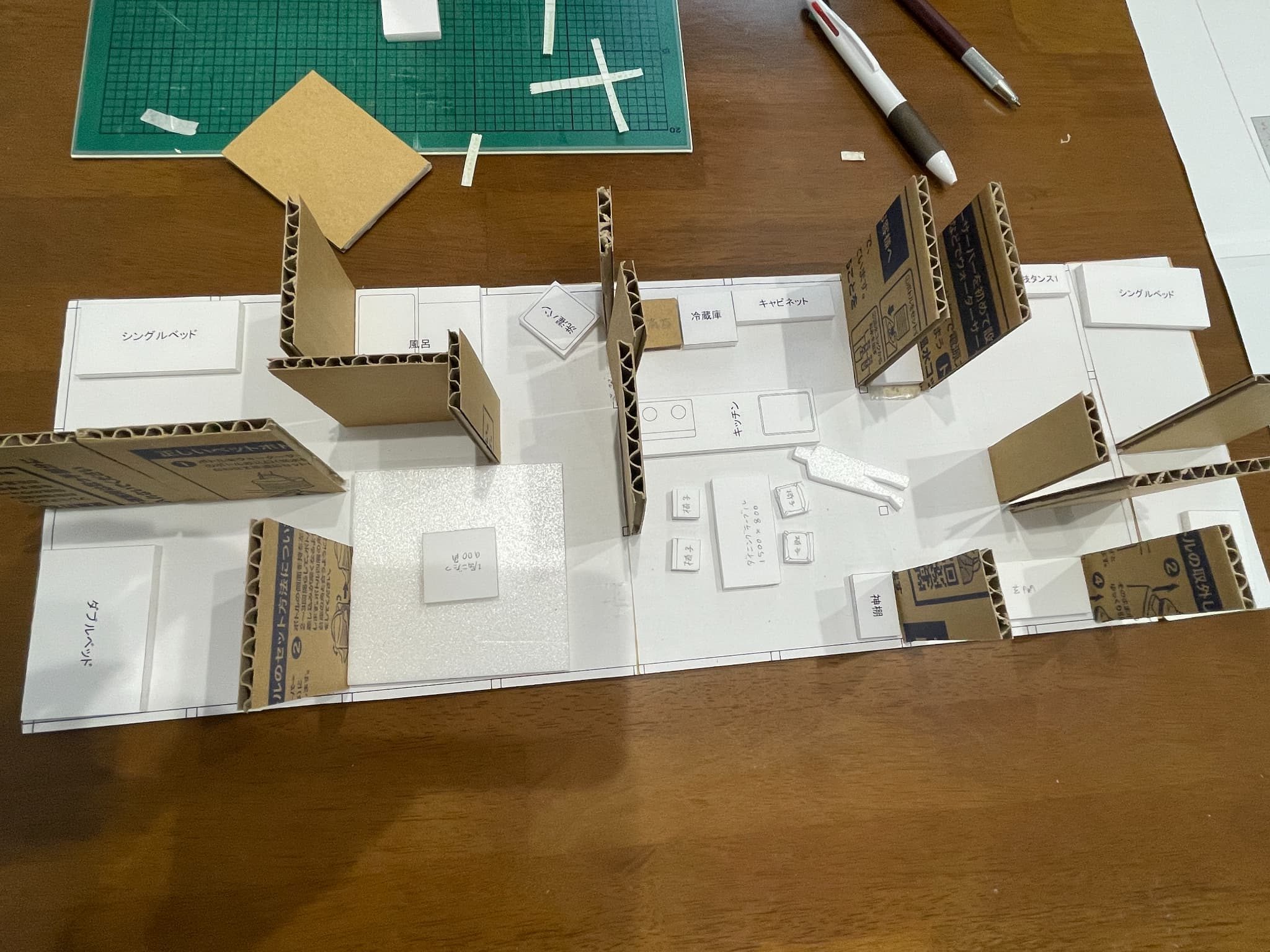 「ミニチュアの壁や家具、水まわりなどの設備機器を動かしながら、一緒に間取りや動線を考えていきました」