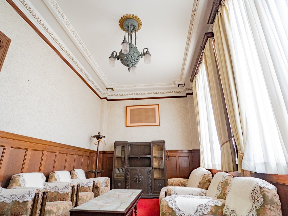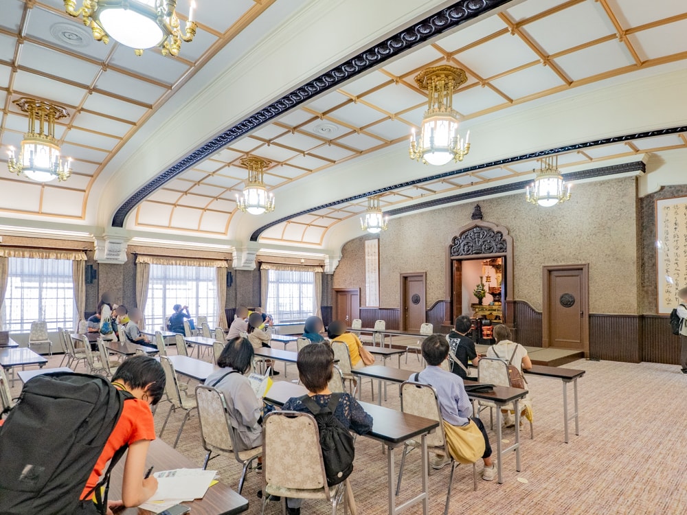 東京建築祭では、普段は公開されていない講堂と貴賓室、本堂裏の廊下が見学できた。講堂は本堂2階中央にある礼拝堂の向かって左側、貴賓室は向かって右側にある。講堂はもともと議場として使用されており、国会議事堂のようなすり鉢状の席が並んでいた。その後講堂に生まれ変わり、すり鉢状から平坦な床に改装されている。