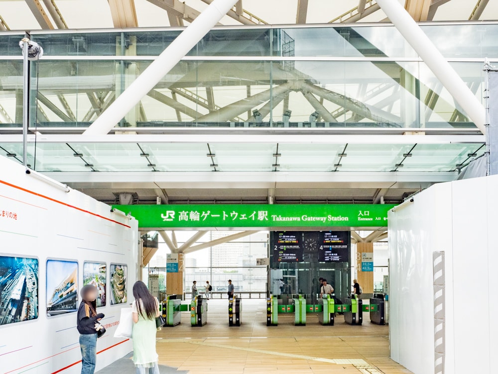 高輪ゲートウェイ駅は、品川駅北周辺地区の再開発によって設置された新駅。まだ同地区の再開発は工事中の段階であるが、2020年に工事の竣工に先行して開業した。