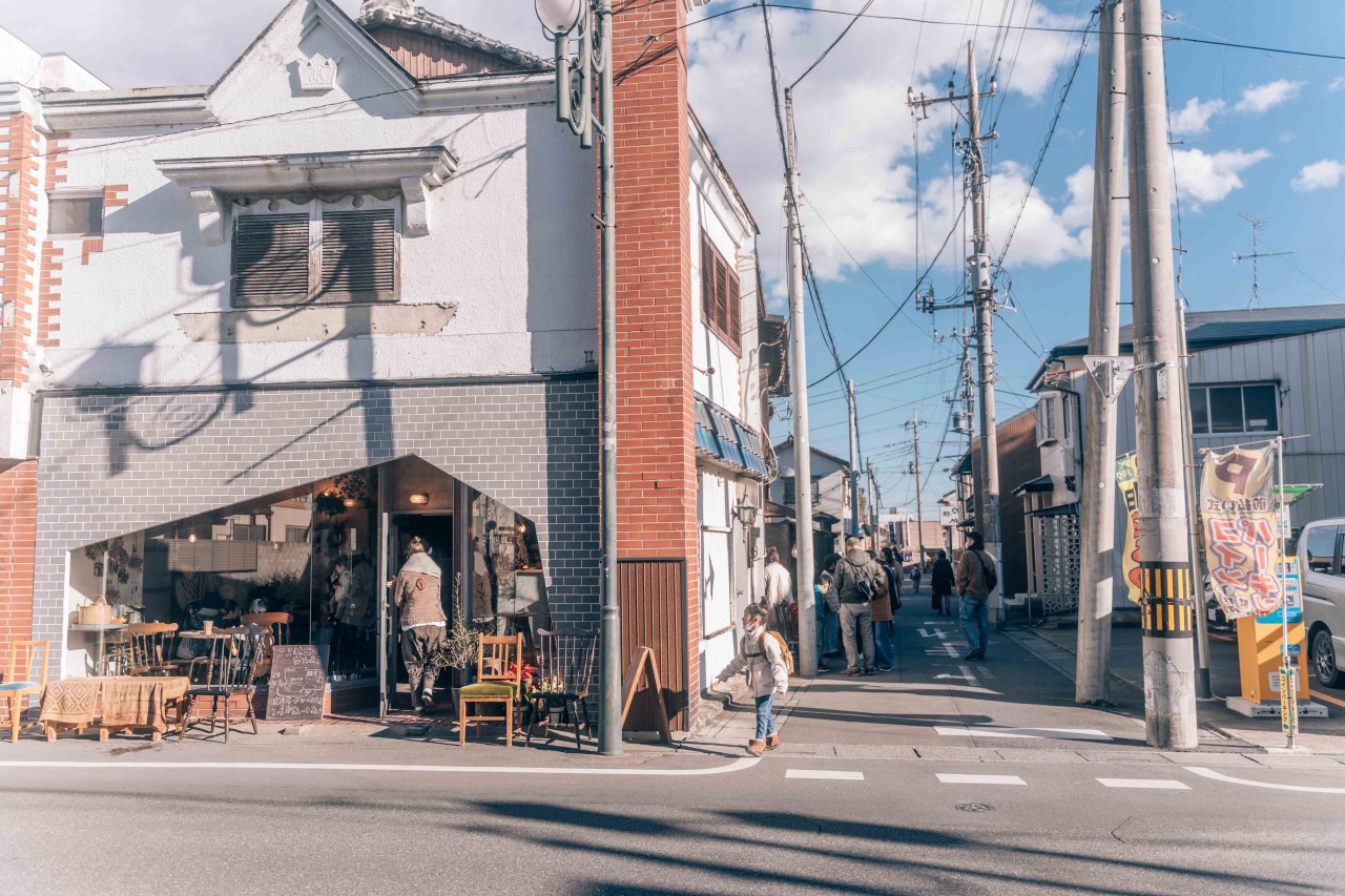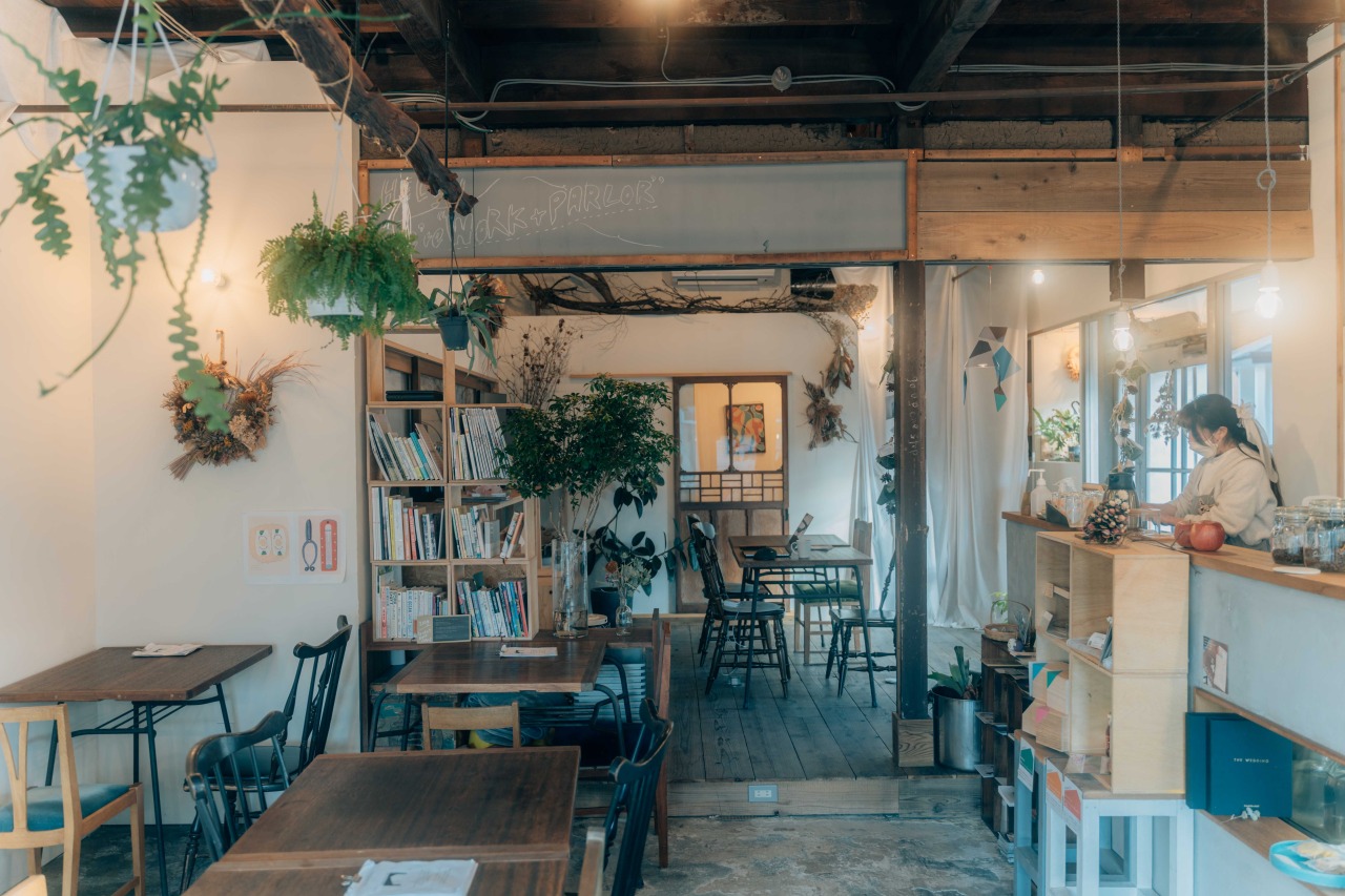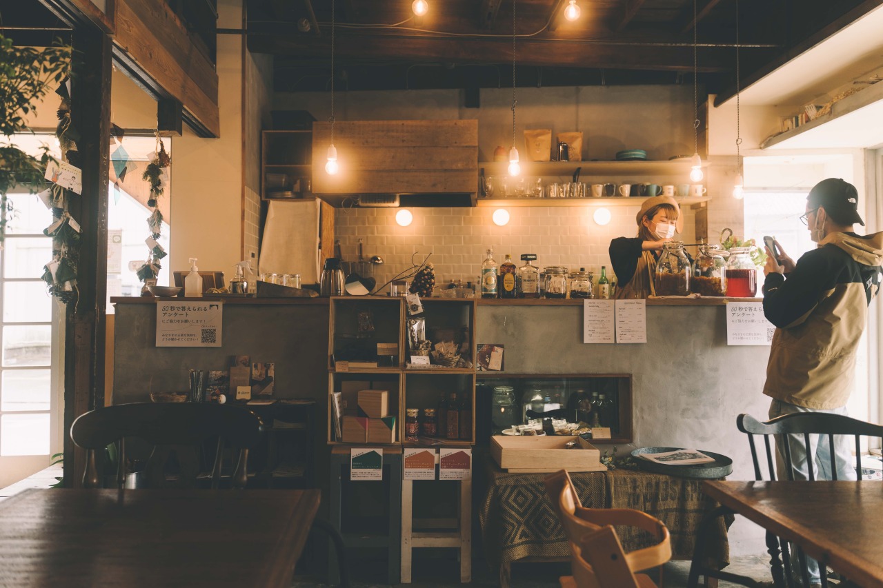 2人の最初の活動は、商店街の空き店舗を活用したカフェの開業だった。2021年、何件かの空き物件を見たうちの一つが現在のカフェで、市役所の職員に所有者を紹介してもらった。外観が魅力的で、「この辺りで一番可愛い建物だと思った」と当時を振り返る大橋さん。十数年間空き店舗だったという築100年超の建物は、400m2を超える広さ。そのうち50m2ををカフェとして貸してもらった。