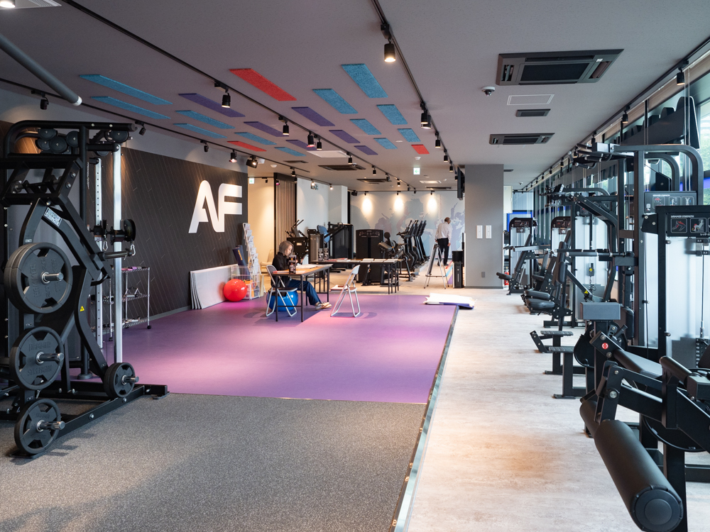 同店のマネージャー・池部 元彌(いけべ もとや)さんは「当店の特徴は最新の各種マシーンを設置していることです。なかでも注目してほしいのが『プラットフォーム』。足元のグリップが強くて踏ん張りが利くので、高重量のトレーニングもしやすいのが特徴です。利用者の多いランニングマシーンも多数設置しています」と語る。