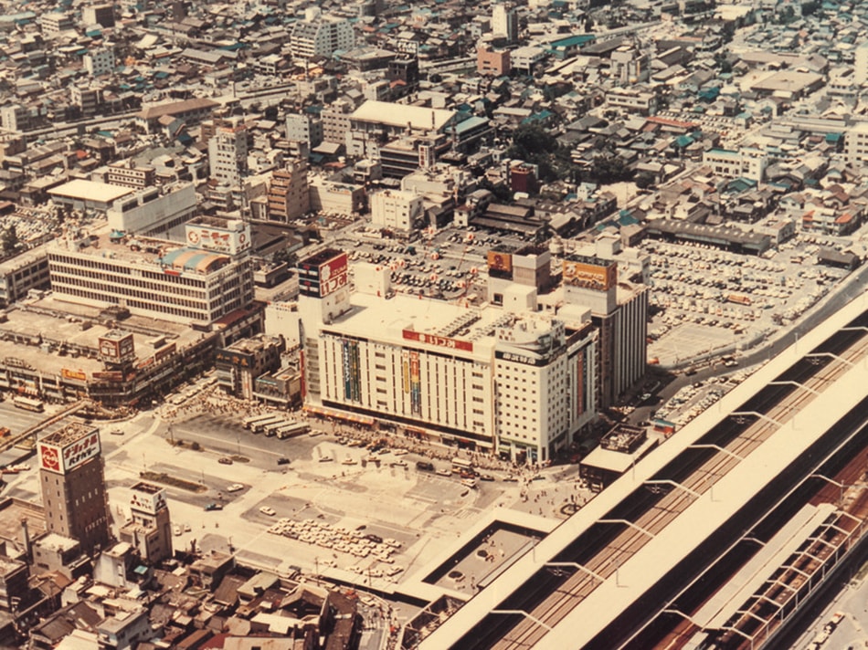 もともと福山駅前ロータリーの西側は、地元の路線バス「鞆鉄道バス(トモテツ)」のバスセンターや商業施設、小規模な商店などが建ち並んでいた。1976年(昭和51年)、トモテツと広島市に本拠を構えるスーパーマーケットチェーンのイズミ(当時は「いづみ」)がこの場所に、共同で商業ビル「福山駅前三之丸共同ビル」をオープン。同ビル内のおもに北側フロアはイズミ、南側フロアはトモテツグループのトモテツセブンが運営する専門店街という構成であった。