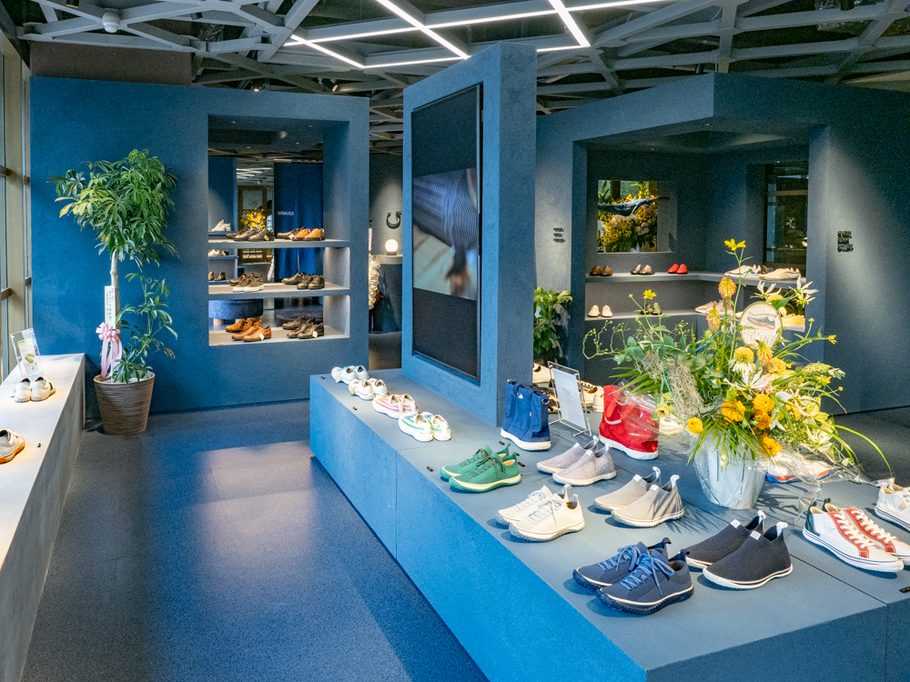 「当店の特徴は備後らしさを押し出している点です。店内は藍色を基調としており、これは備後地方の伝統産業である備後絣(びんごがすり)や、そこから派生したデニム製造などをイメージしています。ほかの直営店にはないアイデアですね」と馬屋原さん。