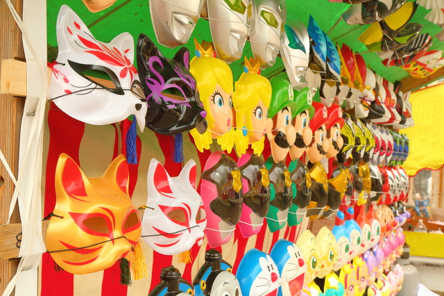お祭りでお面をかぶるのは、踊りの輪に死者が混じっていても気づかれないためだとも説明されるが、森鴎外は『ヰタ・セクスアリス』の中で、「(盆踊りは)表向きは町のものばかりというのであるが、皆、頭巾で顔を隠して踊るのであるから、侍の子がたくさん踊りに行く。中には男で女装したものもある。女で男装したものもある」と書いているから、近年では、むしろ生者が正体を隠すために仮面をかぶったという方が、実態に近いと考えられる。