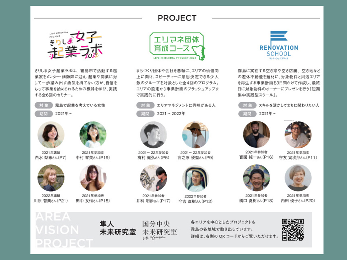 ▲当初2年間は講演会やシンポジウムを開いて「リノベーションまちづくり」を周知。1市6町の合併から15周年となる2020(令和2)年に霧島の成長ビジョン「LIVEKIRISHIMA」を発表。その後、遊休不動産を題材にして建物と周辺エリアの再生計画を作成する「リノベーションスクール」を開催した。この“リノスク”が新しいプレイヤーの発掘につながっている。「他の自治体では、リノスクに参加する方を見つけるのが大変という声をよく聞きますが、いろんな方向からプレイヤーを見つけてリノスクに参加してもらっています。また、これだけだと一過性に終わってしまう懸念があるため、霧島独自のスキームとして育成コースや女性に特化した企画も設けています」(宮之原さん談)耕作放棄地を買い取って「エリア全体をリノベする」という新たな動きも