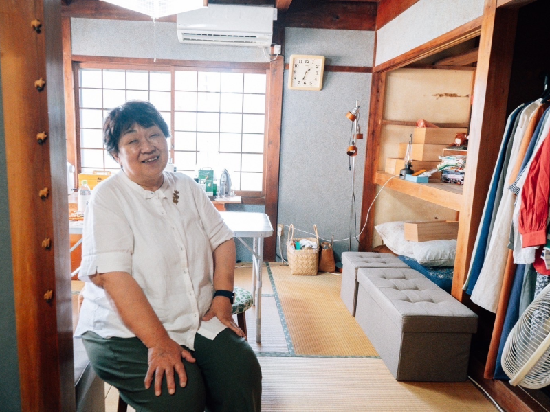 うみべのいえクローゼットを運営する羽根さんは「縫いごと屋」という屋号を掲げて、うみべのいえクローゼットで洋服のお直しやリメイクなどを行っている。自分の店を持つのが夢だったという羽根さん。息子経由でこのプロジェクトの存在を知り、西岡さんと知り合ったという。クローゼットをつくる構想を持っていた西岡さんに一緒にやらないかと誘われ、うみべのいえプロジェクトに参画することに。羽根さんは「地域に長く住んでいるけど、挑戦の機会がなかったんです。ずーっと挑戦してみたかった長年の夢が実現したのよ」とうれしそうに話してくれた。