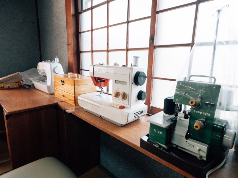 ここでは、手仕事が好きなコミュニティづくりのために手仕事スペースも備えている。アトリエ用に用意されている布はすべて貰い物。うみべのいえプロジェクトメンバーとしてクローゼットを運営する羽根珠実さんに教えてもらいながら、服を直したり、物を作ったりできる空間だ。やってみると痛感するが、初心者にとって服のお直しやリメイクは、一人で取りかかるとなかなか難しい。アドバイスをもらったり、他愛のない世間話をしながら取り組める環境やコミュニティがあることで、楽しく継続的に取り組んでいけるだろう。まだオープンしたばかりだが、これからより多くの人に使ってもらうべく、建物の改修もしていくそうだ。