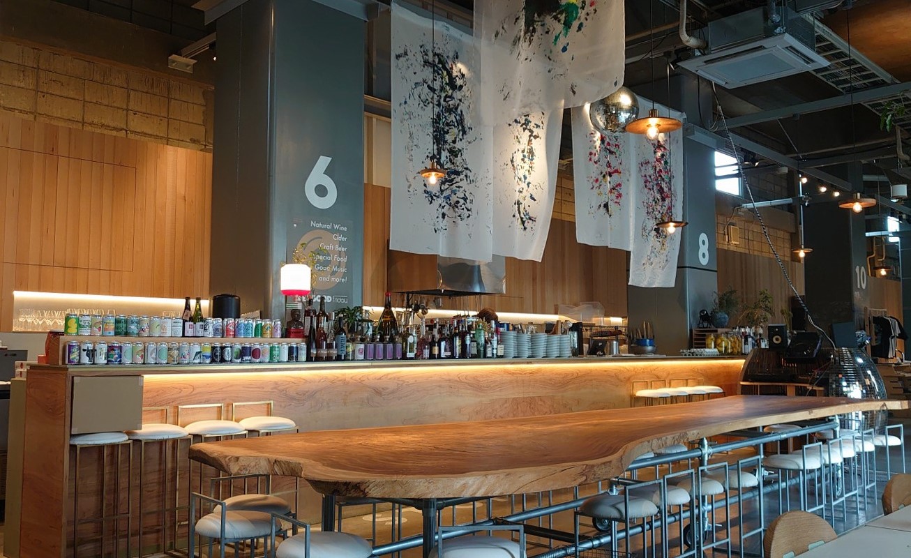 店名が示す通り、24本のピラー(柱)が支える巨大な空間は、ごつごつとした構造と木のインテリアが調和し、どこまでもスタイリッシュ。カフェでは、ガレットやナチュラルワインなどクラフト感に満ちた丁寧な食が好評だ。