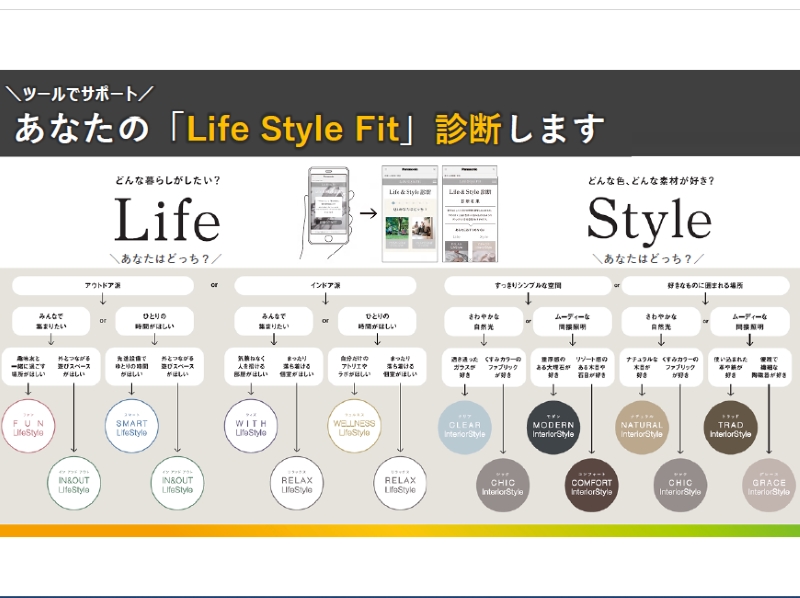 パナソニック ハウジングソリューションズでは、どんな暮らしをしたいのか、どんなスタイルにしたいのか、自分らしさにフィットする暮らしの実現を手助けする「Life Style Fit」を提案している。開発に携わるイノベーション本部 デザインセンター所長の渡辺雅純さんは「6つのライフスタイルと7つのインテリアスタイルとの組み合わせから、ユーザーが好みのリノベーションをプランニングできるようにしたものです」と話す。