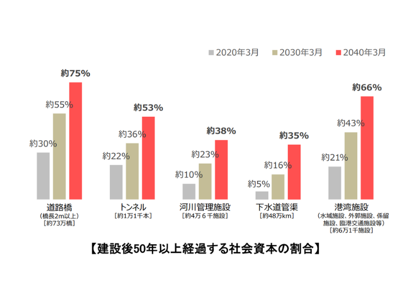 壊れてから修繕する事後保全をすると費用が膨大に膨れ上がってしまうため、壊れる前にメンテナンスをすることで構造物の寿命を伸ばす予防保全を進めていきたい。