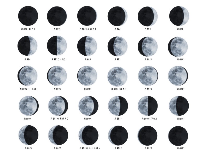 月の満ち欠けの周期は29.53日なので、旧暦では29日の小の月と30日の大の月が交互に巡る。しかし、1年で10.8822日の季節のずれが起こるので、3年ごとに閏月を加えて、1年を13ヶ月にして調整したさて、干支は「暦」の一種であるのだが、これは現代人が思い浮かべるカレンダーとは少しイメージが異なる。