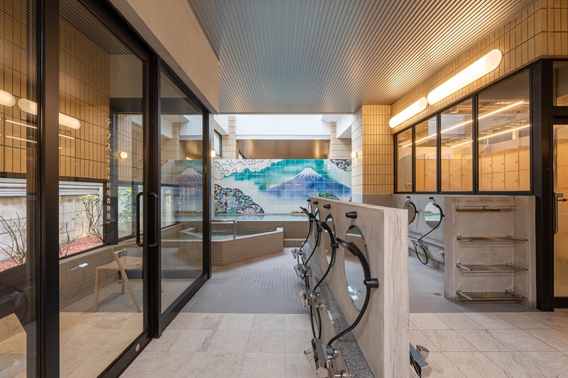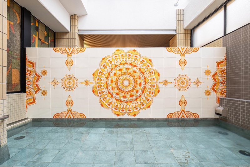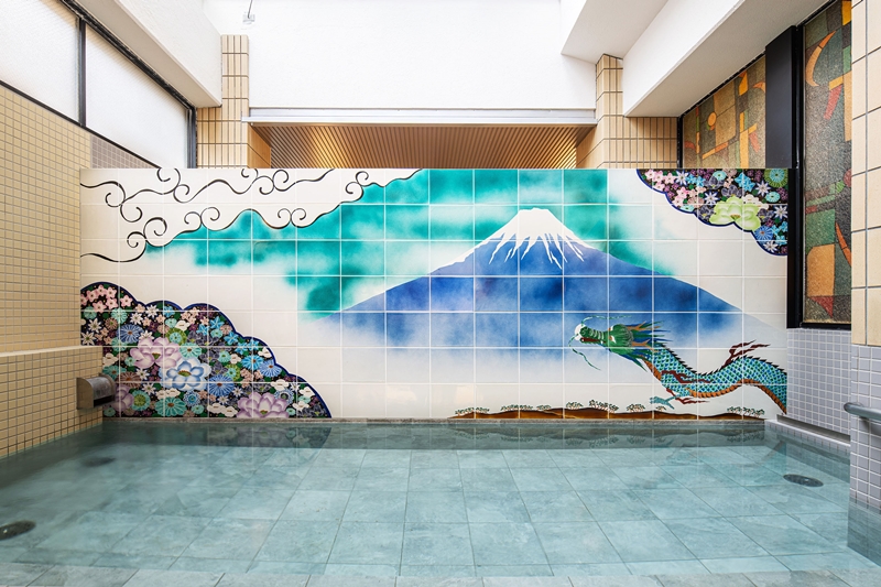 九谷焼タイルを使ったモダンな銭湯絵が印象的
