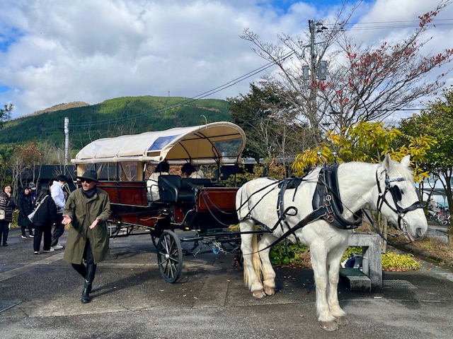 次に向かったのは、駅舎の右手にある「辻馬車広場」だ。こちらを企画・設計したのは、徳永哲(とくながさとし)氏。黒川温泉をはじめ、各地の風景づくりに関わってきたランドスケープアーキテクトだ。
