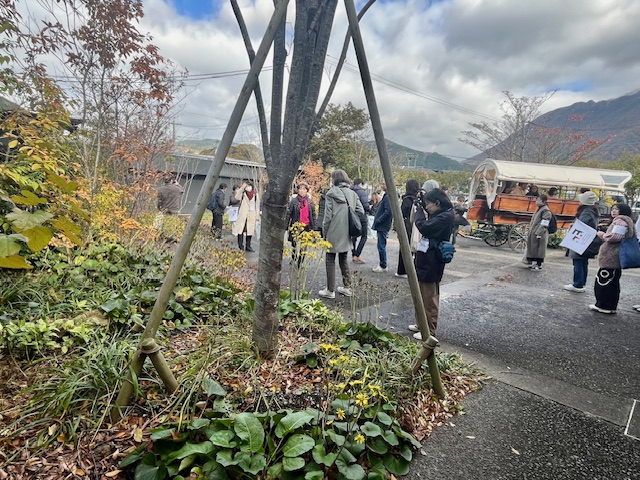 辻馬車広場は、「小さな森づくり構想」の一環として整備された。「磯崎新、隈研吾、坂茂…「湯布院の名建築」を建築家の解説でめぐるツアー①」で紹介したように、日本初の林学博士・本多静六氏が1924年に講演を行った際、由布院に緑豊かな空間を創造するように説いていた。しかし、まだ木々が少ない状況を受けて、一般社団法人由布院温泉観光協会は人材育成ゆふいん財団の協力のもと、まちの中に緑を増やす「小さな森プロジェクト」を進めている。その第一歩として整備されたのが、辻馬車広場の公園植栽だった。趣旨に賛同した「玉の湯」溝口薫平氏の寄付金により実現した。