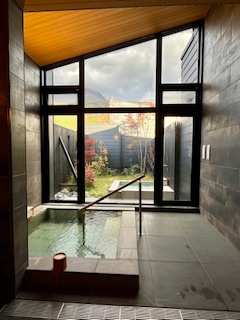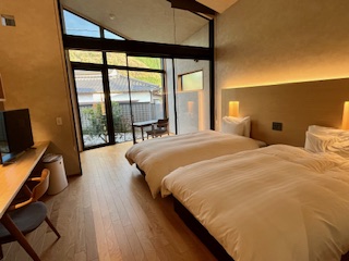 最後に、ツアーを主催する松岡さんが設計した「STAY玉の湯」を訪れた。こちらは、由布院“御三家”のひとつとして憧れを集める高級旅館「由布院 玉の湯」の別館という位置づけで、2024年1月にオープンした。