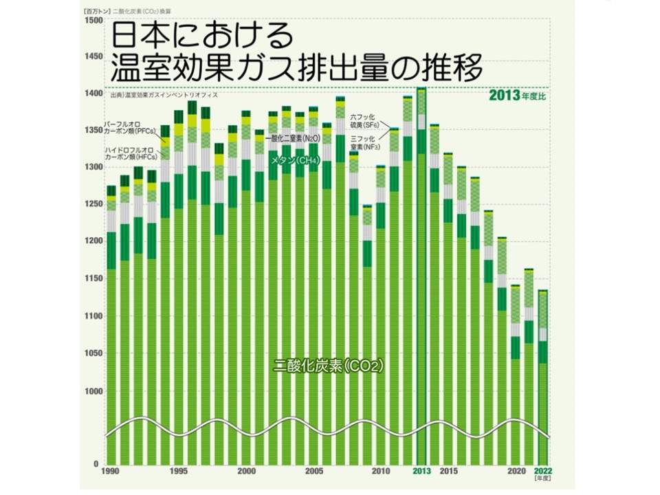 では、現状はどうだろう。全国地球温暖化防止活動推進センターの資料を確認すると、2013年度から2022年度の温室効果ガス排出量の削減率は19.3%だ。9年間でおよそ20%。あと8年で66%削減を達成するのは、かなりハードルが高いといえるだろう。