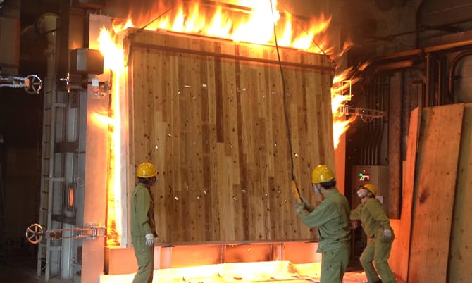 「木は燃えるのに時間がかかるという性質があります。そのスピードは毎分約1mm。厚さ90mmのCLTの場合、1時間以上も耐えることができます。そこからさらに燃え続けても、厚さ50mmまで燃えたあたりで炭化し、燃え進まなくなる『燃えどまり』という状態になり、建物の構造体としての強度を一定程度維持することが可能です。鉄骨の場合、温度が上昇すると強度が低下し変形するのに対し、木造はすぐに倒壊するということはないので、火災が起こったとしても避難する時間が確保できます」