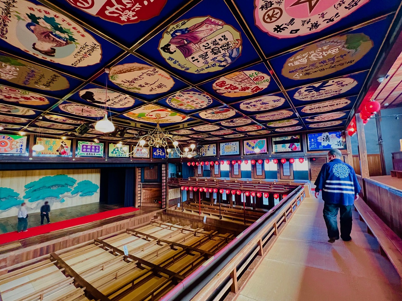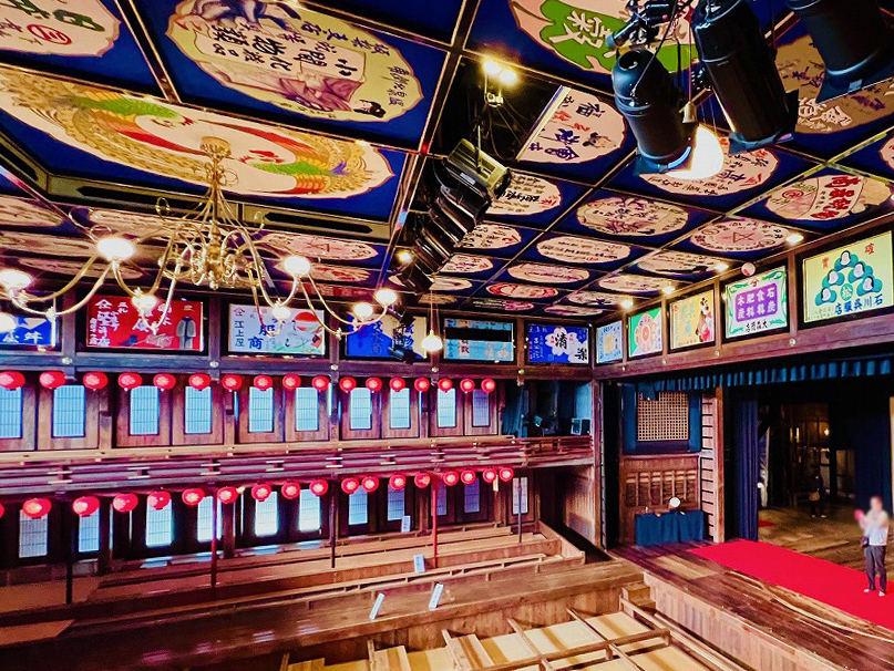 昭和63(1988)年に国指定重要文化財となった後も、平成の大修理を経て“現役芝居小屋”として活躍。和洋折衷の美しい意匠と伝統的な芝居小屋の建築様式は、見学に訪れる観光客だけでなく、著名な歌舞伎役者や音楽家をも魅了し続けている。