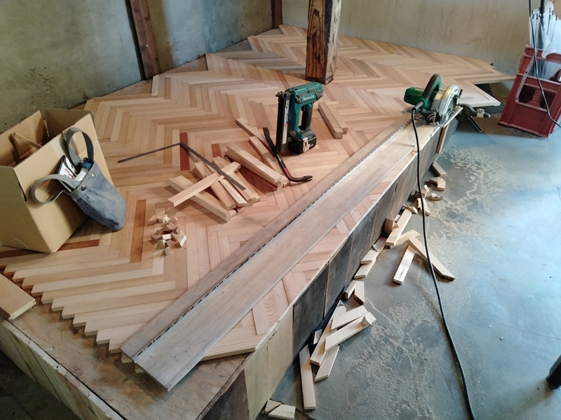 床工事も大変だった作業のひとつ。床のコンクリートをはつる作業(ハンマーやたがね、ハンマードリルなどの工具を使ってコンクリートを砕いたり、穴を開ける作業のこと)をしたのはちょうど夏場で、作業自体は難しいものではないものの、とにかく体力を消耗したという。また、何度ならしても土間が水平にならず、気持ちが折れそうになったとも。