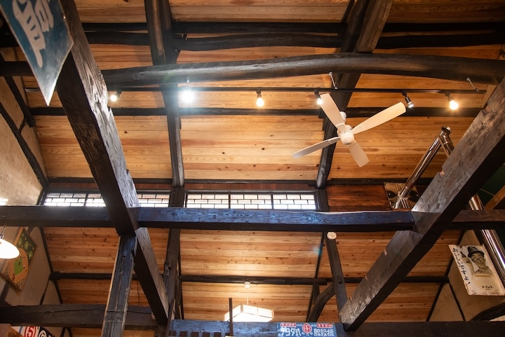 田中さんはその数年前に明治築という自宅の母屋にも手を入れている。ここで建築家に構造を診断してもらい、梁を見せて修復することを決めた。梁や構造を見て判断するのはその時に学んだことというわけだ。