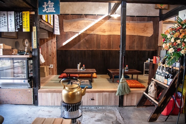 一方で以前からあったように見えるが、かまどは新設したもの。石川県能登半島で産出される天然の珪藻土を使用して作られているもので、薪を焚いて使う。このかまど焚きのご飯はなるほどという美味しさなので訪れる機会があったら忘れずに注文したいところだ。