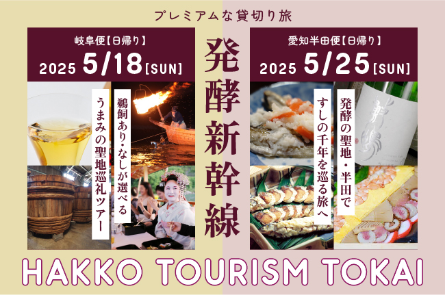 発酵ツーリズム東海では、岐阜の「うまみの聖地巡礼展」、愛知の「すしの千年を巡る旅展」の2つの展示会に加え、各地の酒蔵や醸造蔵などで発酵食文化を体験できる「50の蔵開き・100のうまみ体験」、世界SUSHIサミット、各地で開催される発酵マルシェなど多様なプログラムがある。また、東海道新幹線「のぞみ」を貸し切って、東京から出発する「小倉ヒラクと『発酵新幹線』で行く!うまみの聖地巡礼ツアー」というユニークなツアーも開催する予定だ。