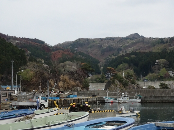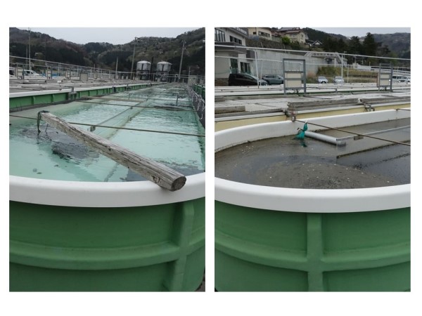 「三陸町に3ヶ所のセンターがあったのですが、全部津波で流されてしまいました。外の石垣の八分目の高さまで津波が来たので、ここは完全に水没しました。施設も水槽も全部流されてしまって、15から20億円くらいの規模の建物の被害がありました」(古川さん)