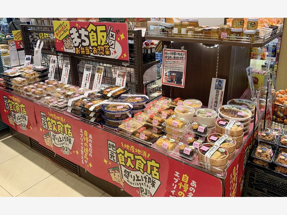 飲食店は営業できなかったり時短営業を余儀なくされたりしたものの、おいしい商品が提供できることに変わりはない。飲食店はテイクアウトに活路を見いだす店も多かった。そこでエブリイでは、「地産地消!地元飲食店盛り上げ隊プロジェクト」を2020年3月よりスタート。地域の飲食店がつくった商品を、エブリイで総菜として販売する取組みを始めた。