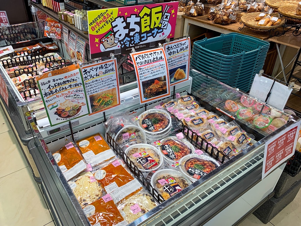 地縁マルシェの総菜・弁当版として位置づけられるのが「まちメシ」というコーナーだ。「2020年に新型コロナウイルス感染症が流行し、外食産業は大きな打撃を受けました。地域を応援する地縁店であるエブリイとして、困っている地元の外食産業に何か力になれることはないかと考えたのが、まちメシのきっかけです」と前田マネージャーは振り返る。
