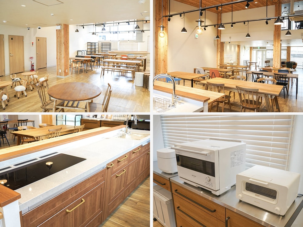 いまここは2階建てで、1階はキッチンや家電を備えたコミュニティスペース。月額会員制で、登録することで利用できる。2階は営業許可済のキッチン付き貸スペースで、会員でなくても利用できる。授乳室やキッズスペースなども完備されており、小さな子連れでも利用しやすい。