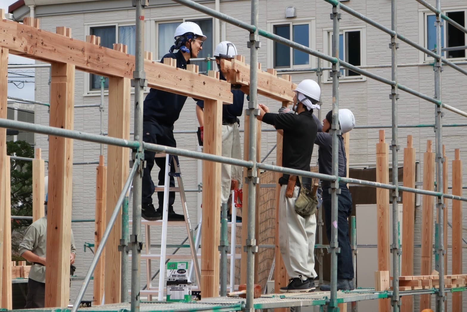 基礎の完成後、建築現場で構造材を組み上げるいわゆる「建て方」が行われたのは10月5日。