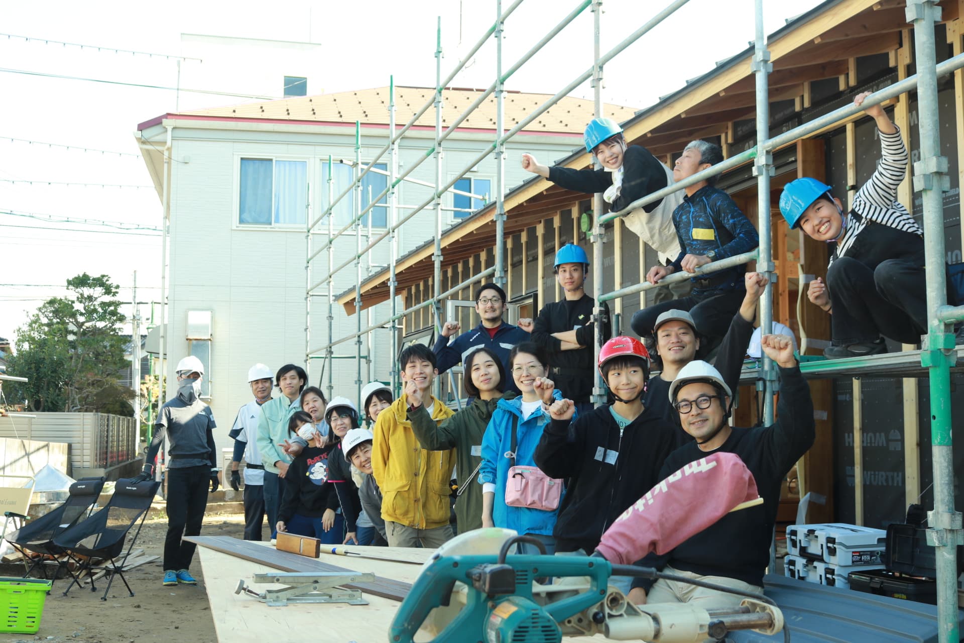 ここからは建設会社や本職の大工、職人に頼らず、建物の内装・外装ともに、沼田さん及びご家族・親戚、ボランティアの方々が協力し合いDIYでつくり上げていった。「Co-build」がコンセプトのNESTINGならではのプロセスである。施工は土曜日、日曜日のみ、2025年3月までの延べ40日、関わった人たちは延べ150名に上る。年代は幼児から60代の男女と幅広い。