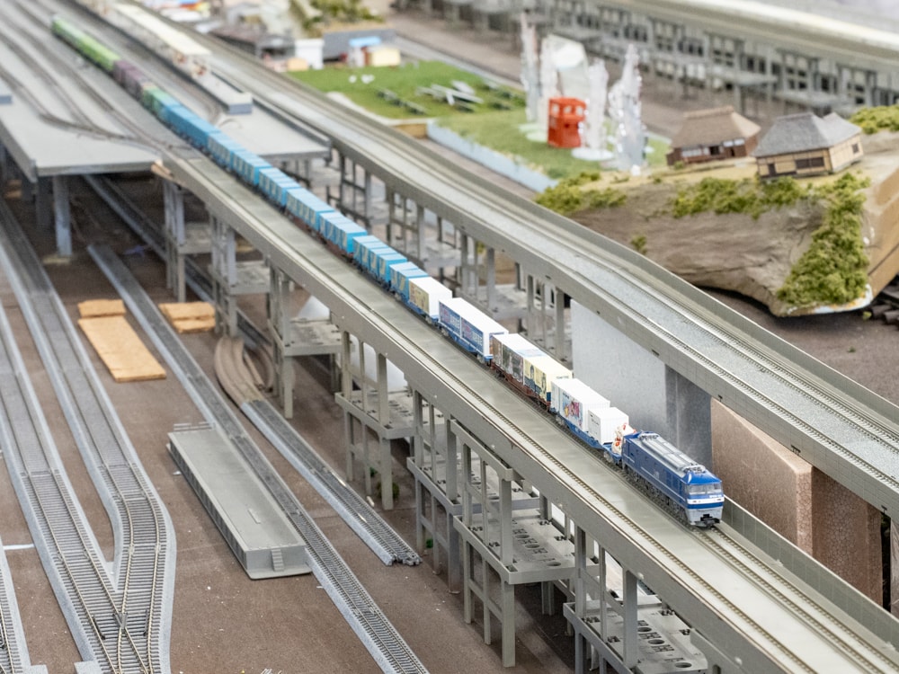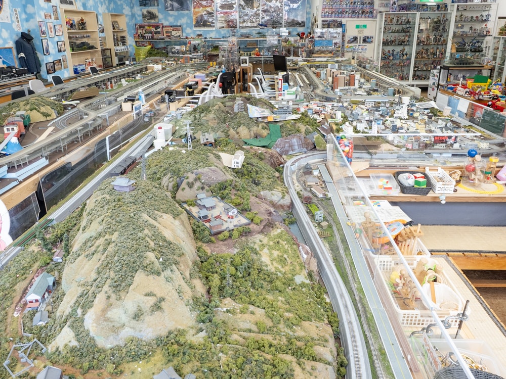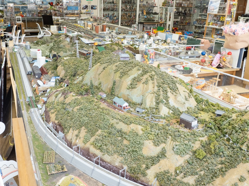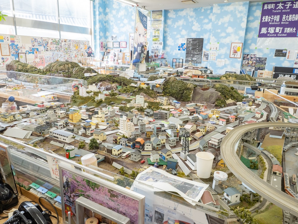 Nゲージ鉄道ジオラマは、約20m2の巨大さを誇る。オープン時に京都精華大学の大学生が制作したものに加え、利用客から寄贈されたものもある。自身の鉄道を模型を持ち込んでのレンタル走行も可能(入場料とは別途に利用料が必要)。広大なジオラマであるため、実在する日本の鉄道と同じように新幹線は最大17両編成、在来線は最大27両(一部区間は28両)編成を実現できるのが、同館の強みとのこと。今では全国から鉄道ファンがやってくる。
