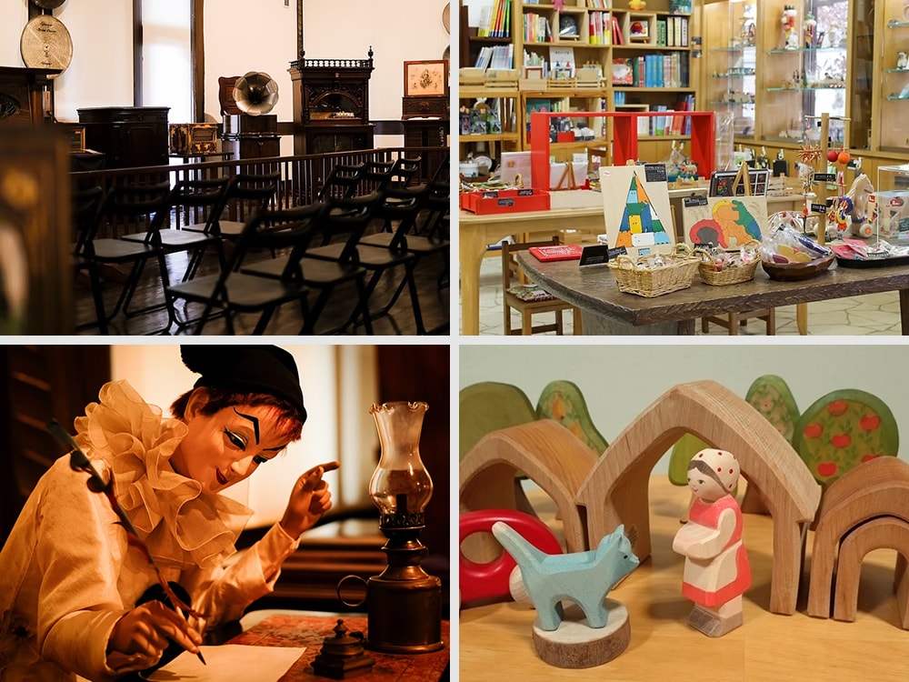 また「オルゴールコンサート」では、スイス製シリンダー式オルゴールやドイツ製ディスク式オルゴール、オートマタ(からくり人形)などが楽しめる。おもちゃづくりができる「おもちゃ教室」や同館収蔵の積み木やおもちゃで遊べる「プレイルーム」や「ままごとコーナー」などもある。
