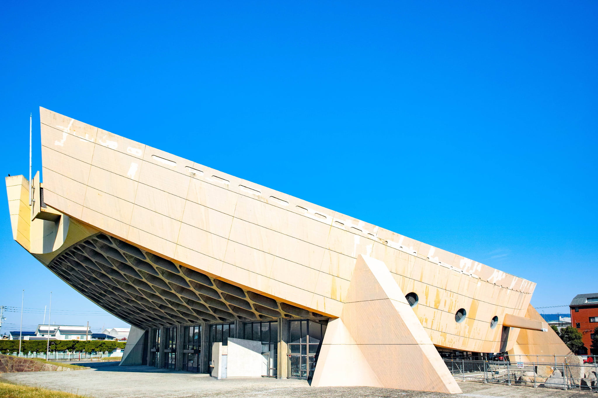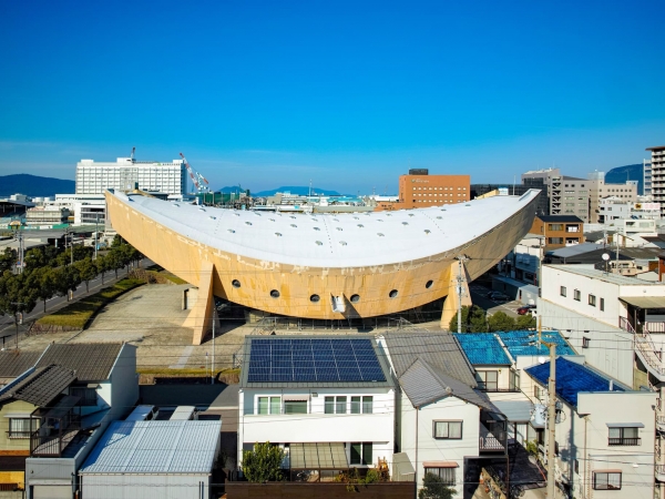 国内外で著名な建築家、丹下健三氏(丹下都市建築設計)が設計した、「船の体育館」として香川県民に親しまれてきた1964年竣工の建物である。同氏が同時期に手がけた「国立代々木競技場」(国指定重要文化財)と同様の手法で設計されている。プレストレストコンクリートおよび鉄筋コンクリート造によるつり屋根構造で、柱のない広大な内部空間が特徴だ。