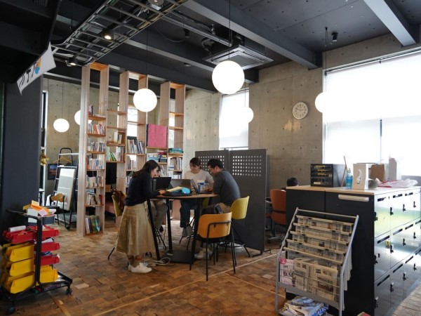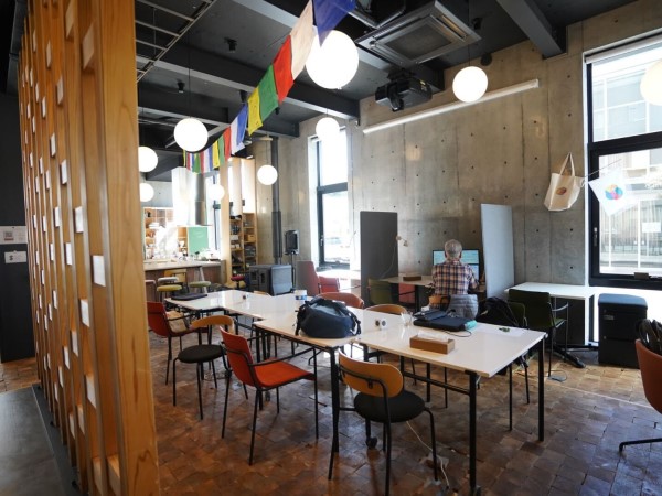 スナバは、駅から徒歩10分と程近く通いやすい。中に入ると、輪になってディスカッションをしている人たちがいたり、コーヒーを飲みながら仕事をしている人がいたり。カラフルでアットホームな空気のなか、コワーキング利用者でにぎわっていた。