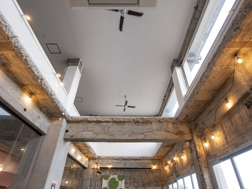 また、牛窓テレモークは「文芸的で公共的な交流の拠点」というコンセプトを打ち出している。文化活動や芸術活動をきっかけにし、交流が広がる場所、拠り所になる場所にしたいとの思いがあった。そのためテナントとしてギャラリーや音楽・映像スタジオが入るほか、音楽・美術・映画などのイベントができるイベントスペースを備えている。