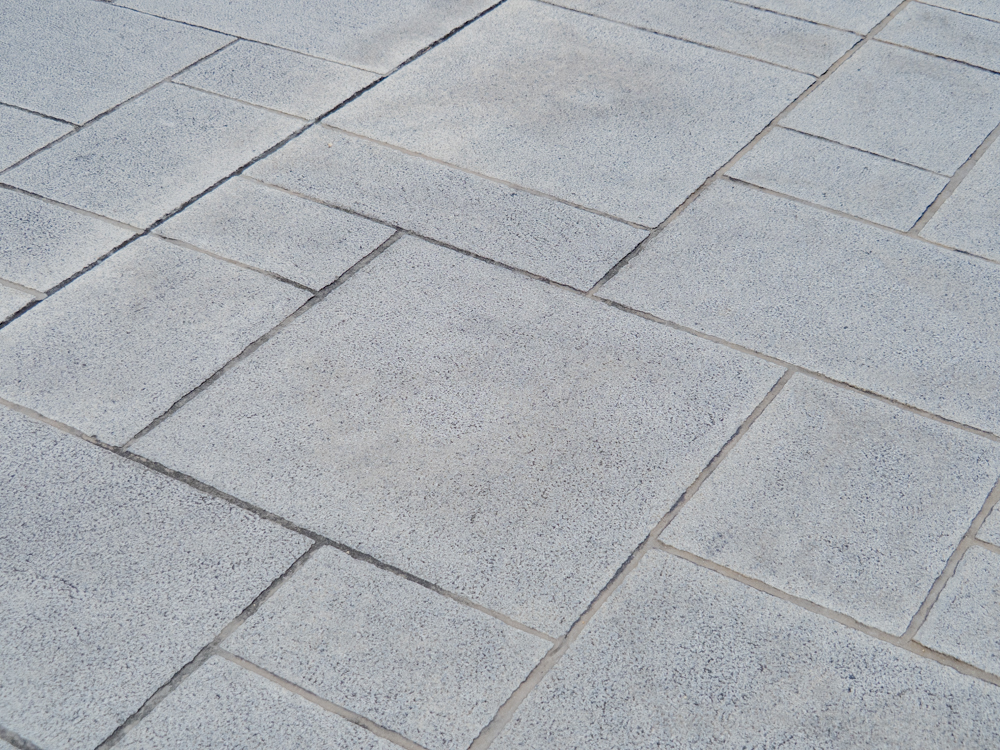 路面は、神社の石畳をイメージして、白御影石のノミ切り仕上げが計画されていた。しかし歩行・走行のしやすさとコスト面から、白御影石の粗ビシャン仕上げに変更し、デザイン性と利便性の両立を目指した。