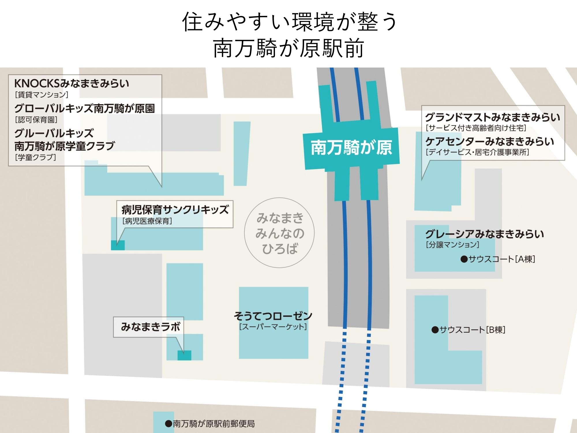 南万騎が原駅前は、相鉄グループのエリアマネジメント拠点のひとつ。駅前に階段状に広がる広々とした「みなまきみんなのひろば」、広場の奥に設けられた「みなまきラボ」、そして隣にある小さなチャレンジスペース「みなまきTRYSTAND」。これらが一体となり、まちを継続・発展させるための取り組みを行っている。