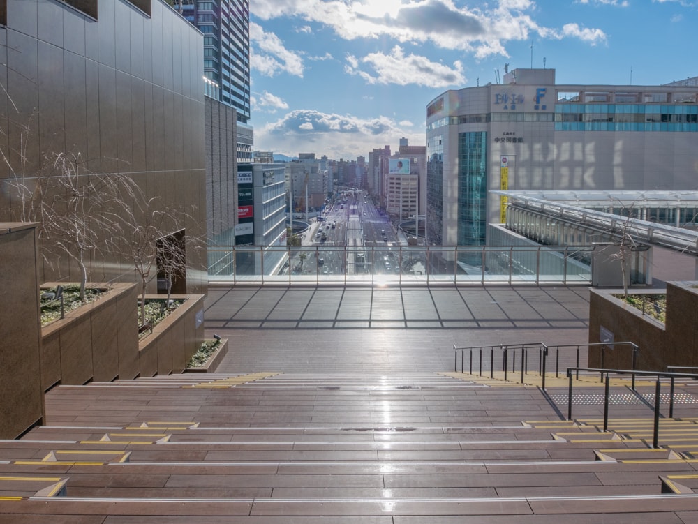 雁木テラスや大階段、クスノキを使ったベンチも広島らしさを感じさせるものだろう。