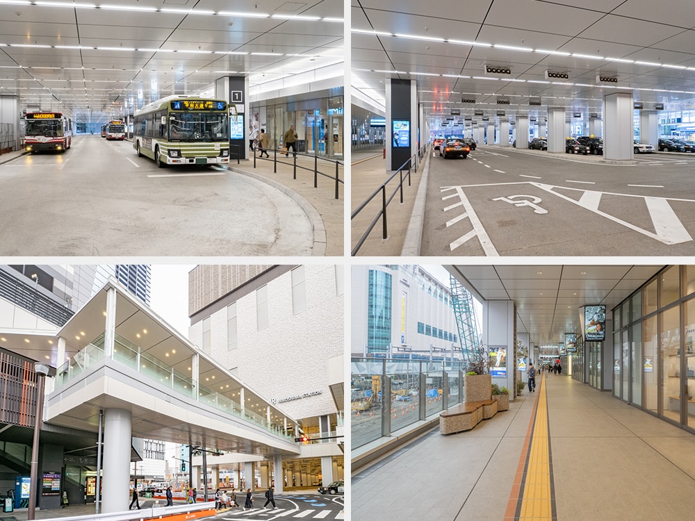 ちなみにバスロータリーやタクシー乗り場は、1階に設置。エキ×デンスクエアのすぐ下に位置しており、エスカレーターや階段、エレベーターで簡単にアクセスできる。