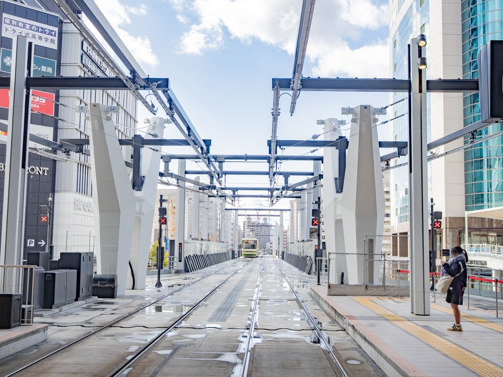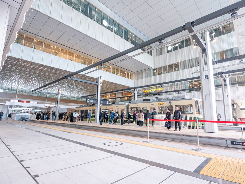 新しい駅ビルの建設と共に、路面電車の停留場を2階に移転し、路面電車が高架で2階へ乗り入れる。路面電車の高架による駅ビル2階への乗り入れは、全国初となる非常にめずらしい試みだ。