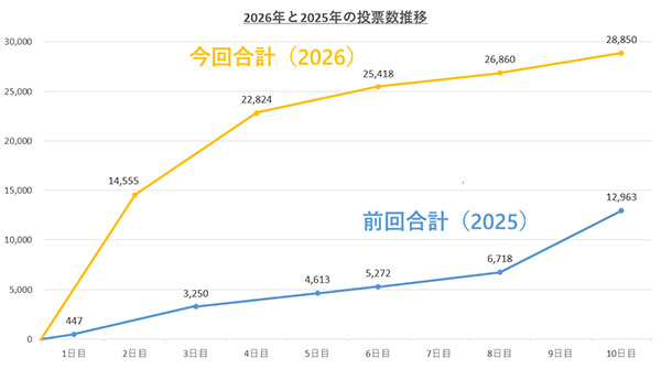 今回は、大阪・関西万博の「大屋根リング」や「null²」、「Ginza Sony Park」など注目の集まるプロジェクトの建築も名を連ねたため、過去最高の投票数を集めた。