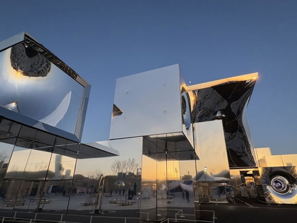 メディアアーティスト落合陽一氏がプロデュースしたこのパビリオンは、建築、デジタル技術、メディアアートを融合させた実験的な空間として計画され、来場者に新しい感覚の建築体験を提示。1970年大阪万博の岡本太郎の「太陽の塔」の思想を再び思い起こさせる、万博が持つ「未来を示す場」という意味を21世紀の技術と表現で再解釈したものといえる。